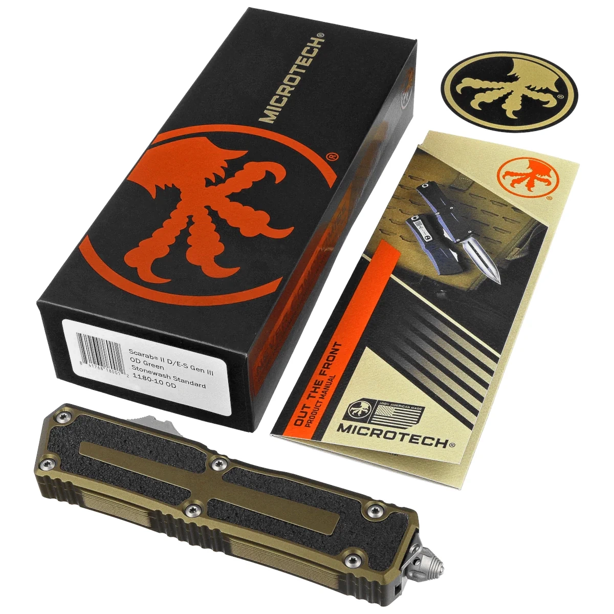 Nóż automatyczny OTF Microtech Scarab II Gen III D/E-S OD Green Aluminium, Stonewashed M390MK by Tony Marfione (1180-10OD)
