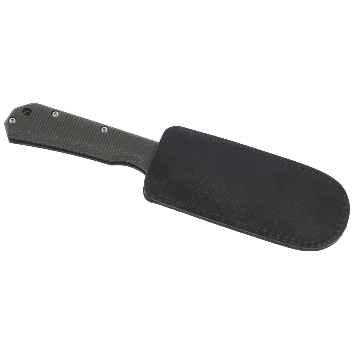 Rękojeść - wykonana z Canvas Micarty, materiału powstałego z warstw tkaniny nasączonej żywicą epoksydową, który zapewnia wysoką odporność na ścieranie, wilgoć i zmienne warunki atmosferyczne. Charakterystyczna struktura powierzchni zwiększa przyczepność, gwarantując pewny chwyt nawet w trudnych warunkach. Ergonomiczne profilowanie i delikatne frezowania dopasowują uchwyt do naturalnego ułożenia dłoni, redukując zmęczenie podczas pracy. Wewnętrzne stalowe linery wzmacniają konstrukcję i nadają jej stabilność, co ma kluczowe znaczenie dla trwałości użytkowej foldera. Dodatkowe elementy, takie jak skórzany futerał do przenoszenia oraz otwór na linkę zabezpieczającą, zwiększają funkcjonalność noża w codziennym użytkowaniu. Całość bazuje na śrubach Torx, co ułatwia konserwację i personalizację narzędzia. Rękojeść modelu Ciol to przykład przemyślanej, użytkowej konstrukcji EDC – trwałej, wygodnej i dopracowanej w detalach.