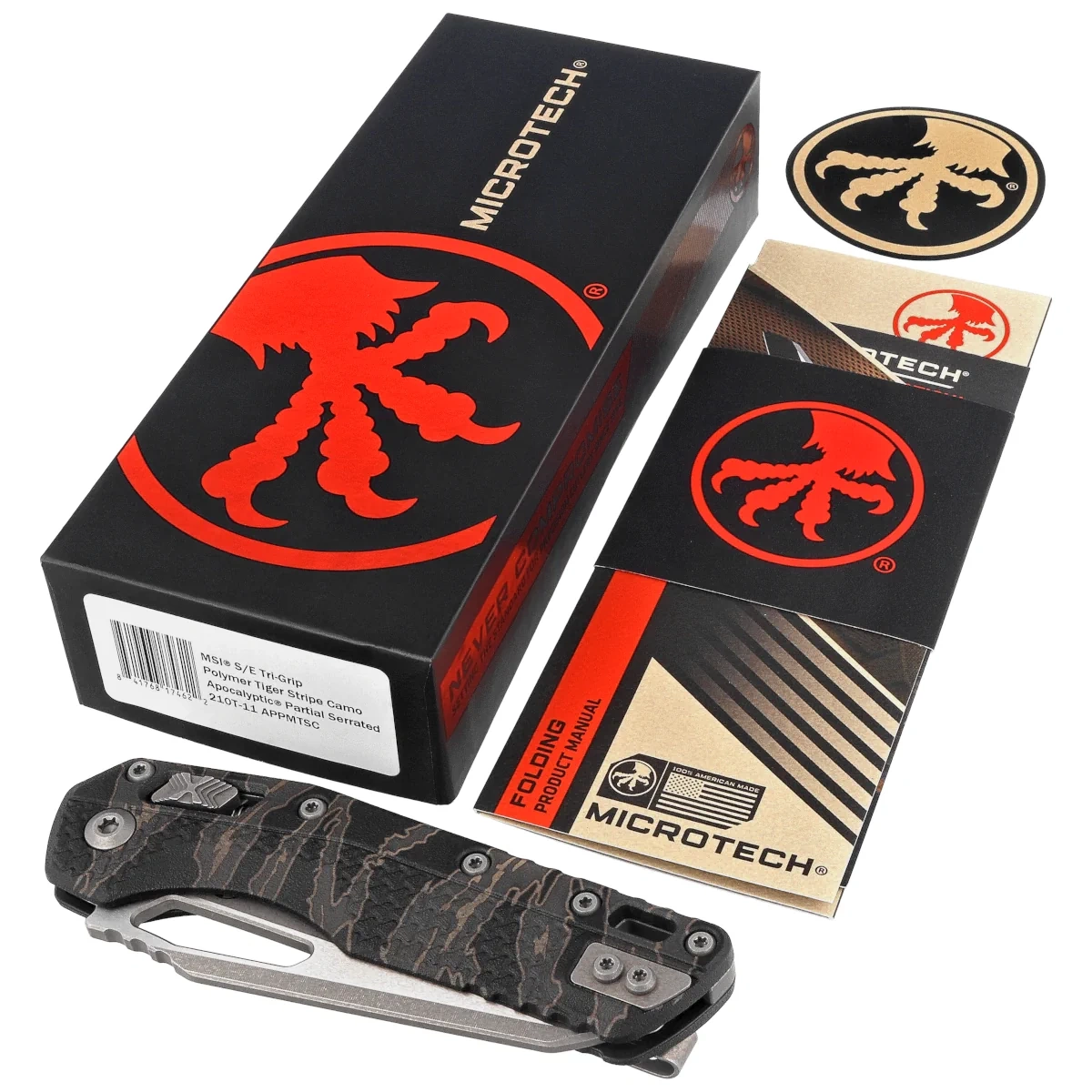 Nóż składany Microtech MSI S/E Ram-Lok Tiger Stripe Camo Tri-Grip Polymer, Apocalyptic P/S M390MK by Tony Marfione (210T-11APPMTSC)