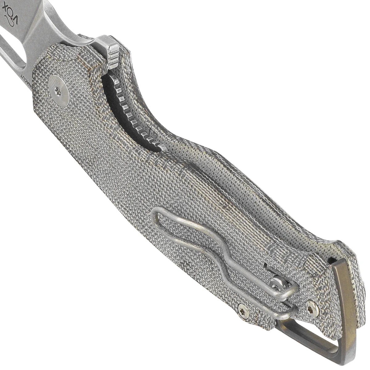 - Vincent Green Canvas Micarta, Stonewashed skierowany do wymagających odbiorców nowoczesny, kompaktowy folder E.D.C. Projekt cenionego knifemaker'a Jesper'a Voxnaesa, to synteza włoskiej estetyki z duńskim pragmatyzmem. Tradycja i użyteczność!