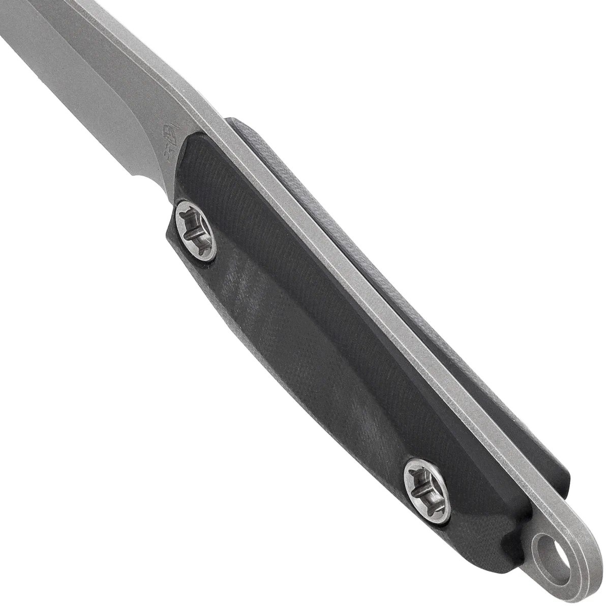 Rękojeść - ergonomiczna, z kompozytu G10 oferuje doskonałą przyczepność i kontrolę nawet w wilgotnym środowisku czy w rękawicach taktycznych. Głębokie profilowanie i tekstura powierzchni poprawiają pewność uchwytu, umożliwiając bezpieczne operowanie narzędziem niezależnie od sytuacji. Dzięki konstrukcji full tang całość zachowuje zwartą, wytrzymałą formę, której nie sposób złamać w terenie. Wkręcane śruby umożliwiają łatwy demontaż okładzin, ułatwiając czyszczenie po intensywnym użyciu. Otwór na linkę w tylnej części rękojeści daje możliwość dodatkowego zabezpieczenia noża lub montażu smyczy użytkowej.
