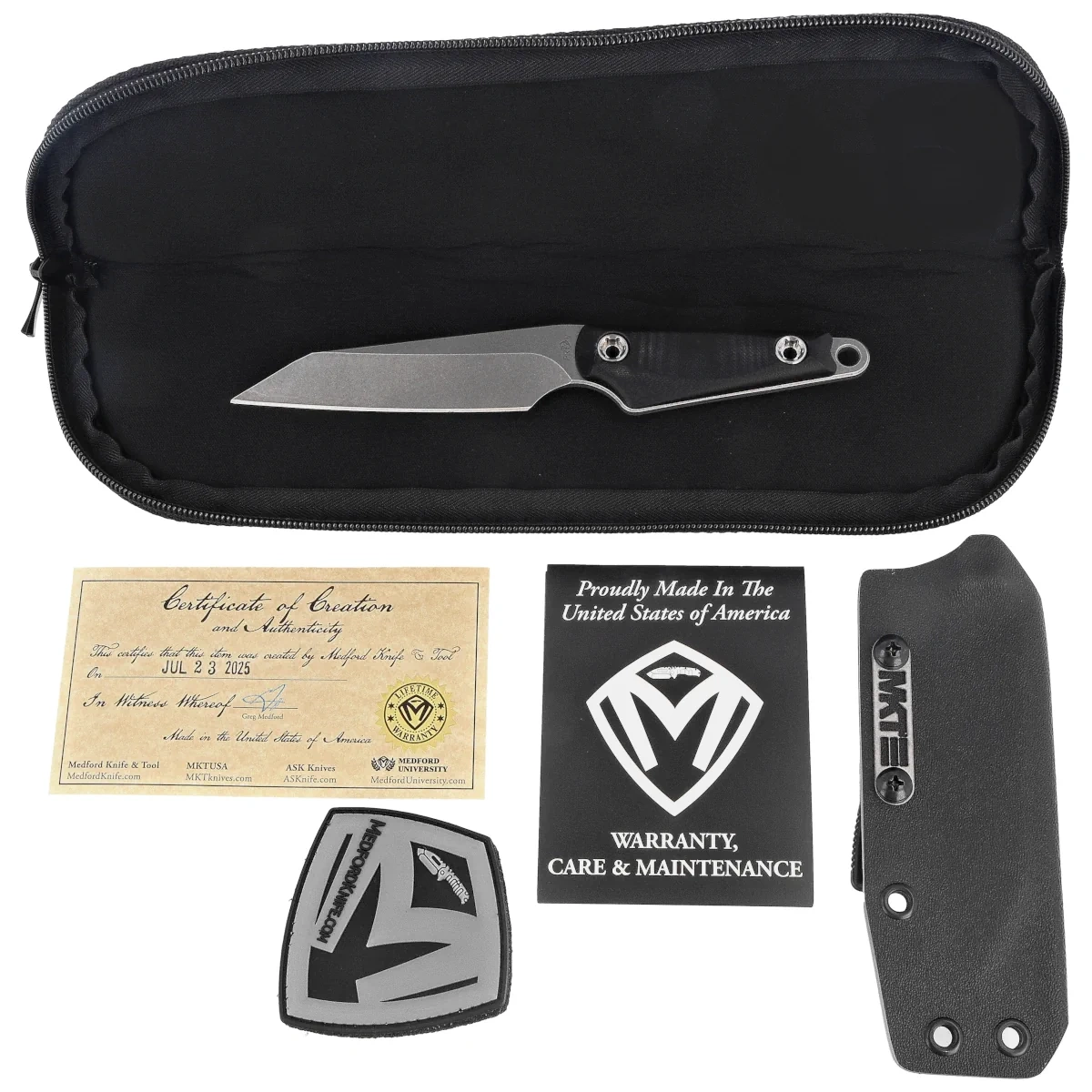 Greg Medford, założyciel Medford Knife and Tool, to amerykański rzemieślnik i patriota z Arizony. Jego grecko-irlandzkie korzenie i wartości, które wpoiła mu rodzina, takie jak pragmatyzm i ciężka praca kształtowały jego drogę innowacyjnego projektanta. Jako były żołnierz piechoty morskiej, pilot i mistrz sztuk walki, Greg łączy w swoich projektach amerykańską pragmatyczność, wolność i zaawansowaną technologię. Firma, założona w 2010 roku, słynie z ręcznie robionych, trwałych narzędzi taktycznych i noży, w tym znanego modelu Praetorian