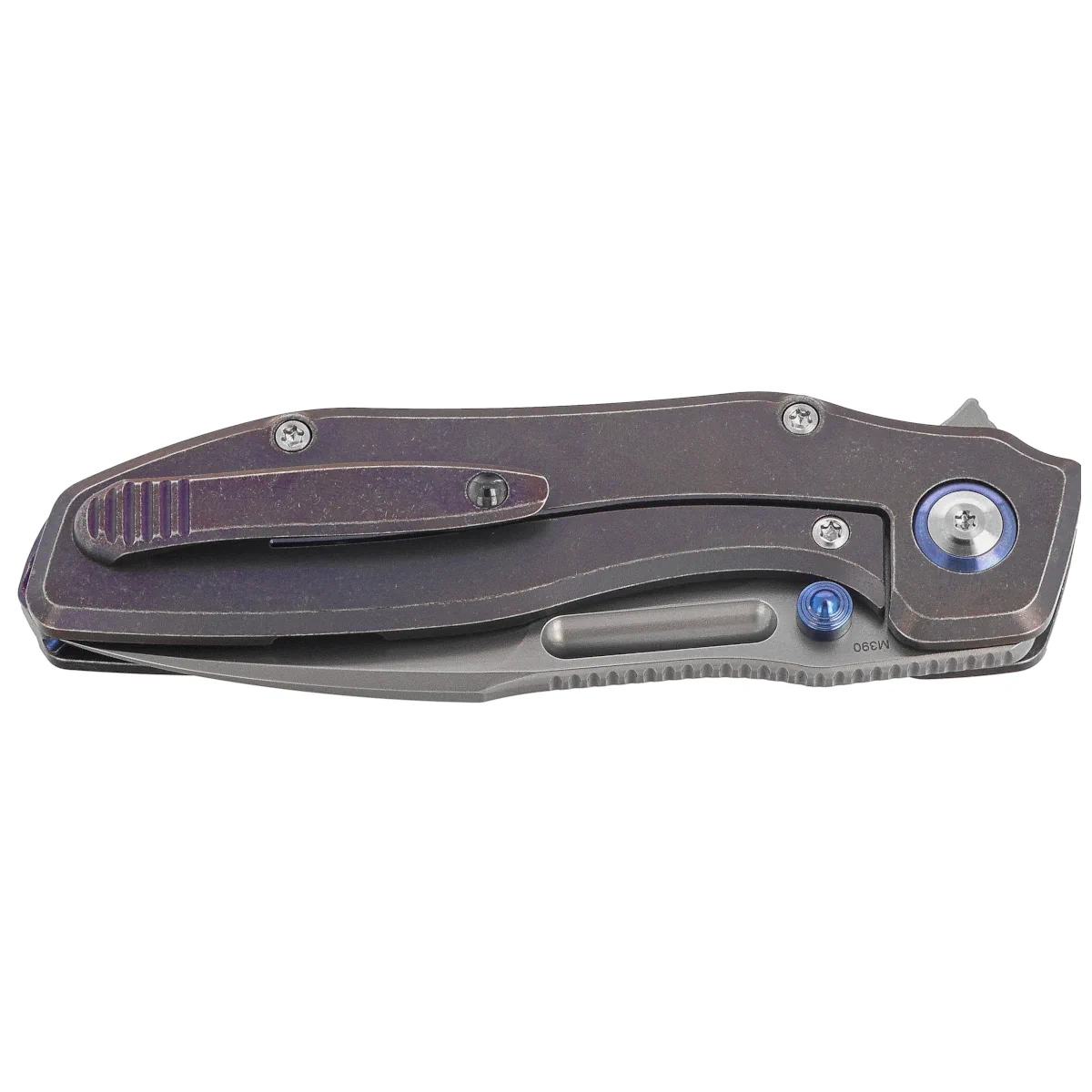 Nóż składany Remette TwoFace Blue Stonewashed Titanium, Fine Grinding Pearlescent M390 (DSTF-B)