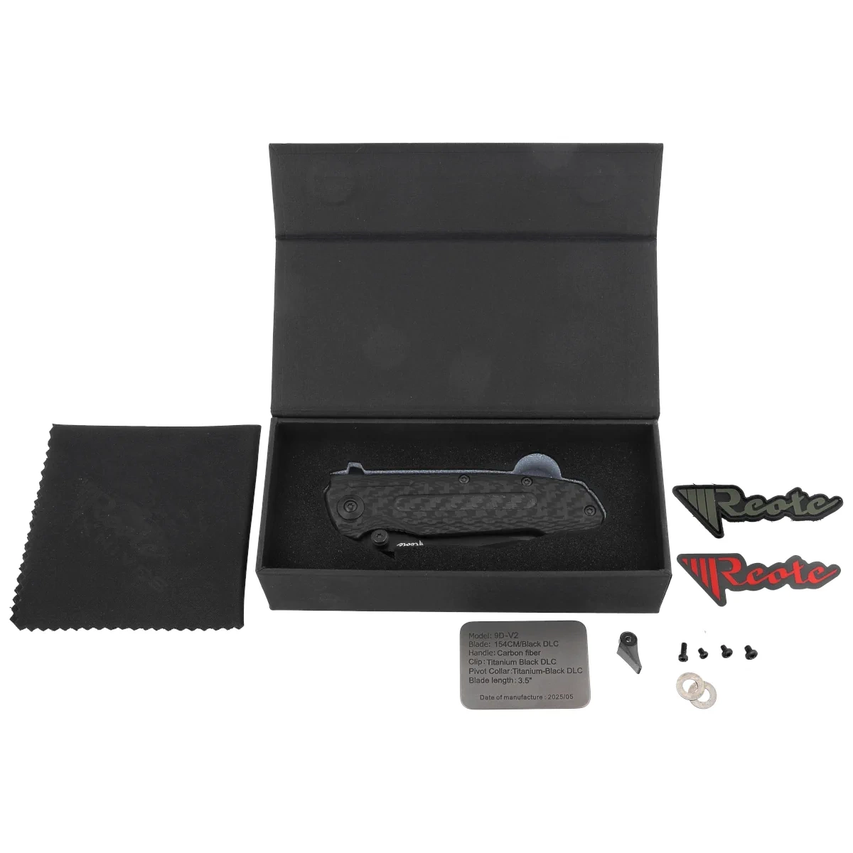- District 9 V2 Black Titanium/Carbon Fiber, Black DLC, nóż składany EDC z głownią ze stali 154CM i frezowaną rękojeścią z tytanu i kompozytu Carbon Fiber. Detale wykończenia i precyzyjny frame lock definiują jego technologiczny charakter.