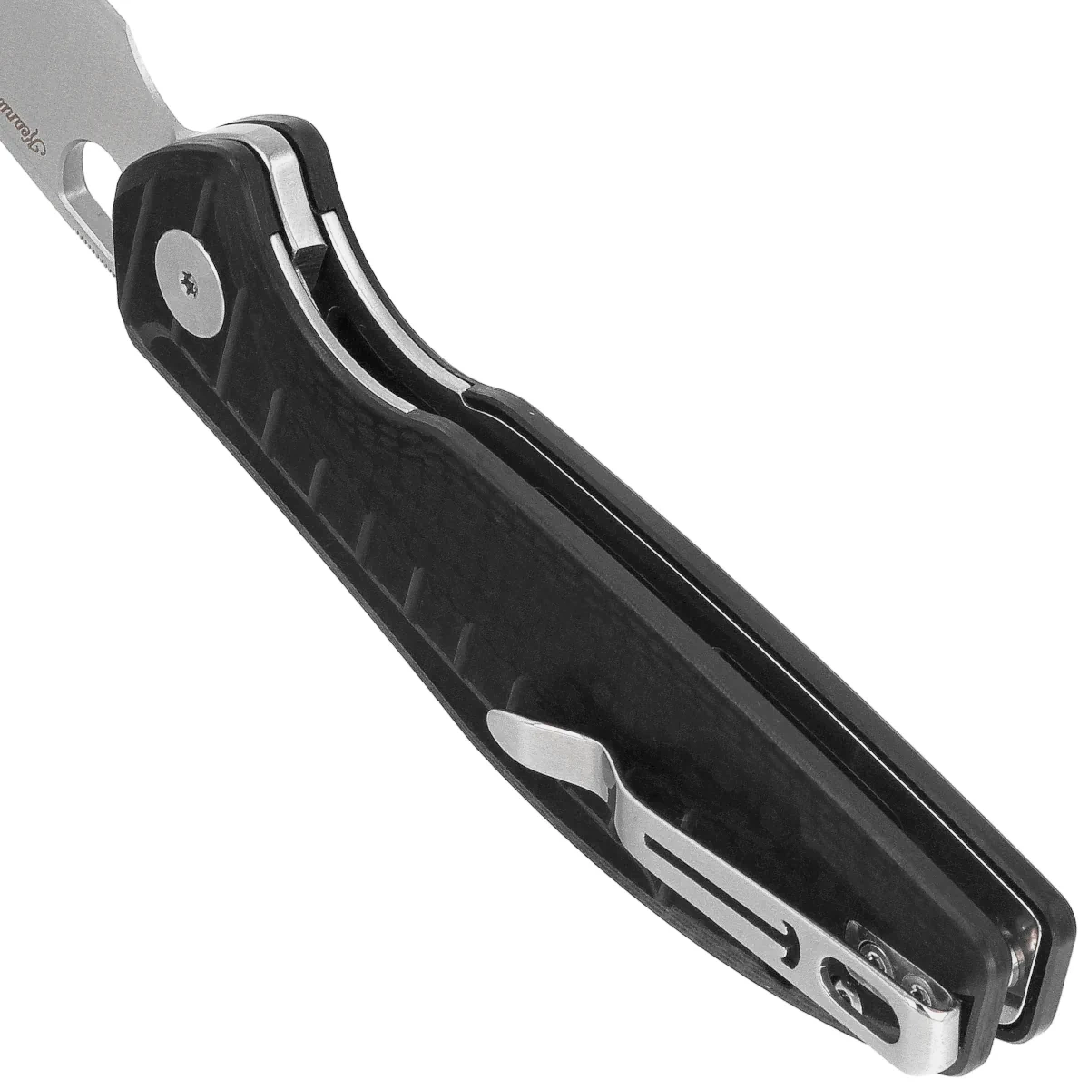Rękojeść - z kompozytu G10 gwarantują lekkość, wysoką wytrzymałość i pewny chwyt nawet w wilgotnych warunkach. Teksturowana powierzchnia poprawia trzymanie, nie powodując nadmiernego zużycia odzieży. Button lock zapewnia łatwe blokowanie i odblokowywanie ostrza, a otwór w głowni wspiera szybkie otwieranie. Klips deep carry o odwracalnym montażu umożliwia dyskretne przenoszenie, otwór na smycz zwiększa możliwości mocowania. Ergonomiczne kształtowanie uchwytu zapewnia komfort podczas długotrwałego użytkowania.