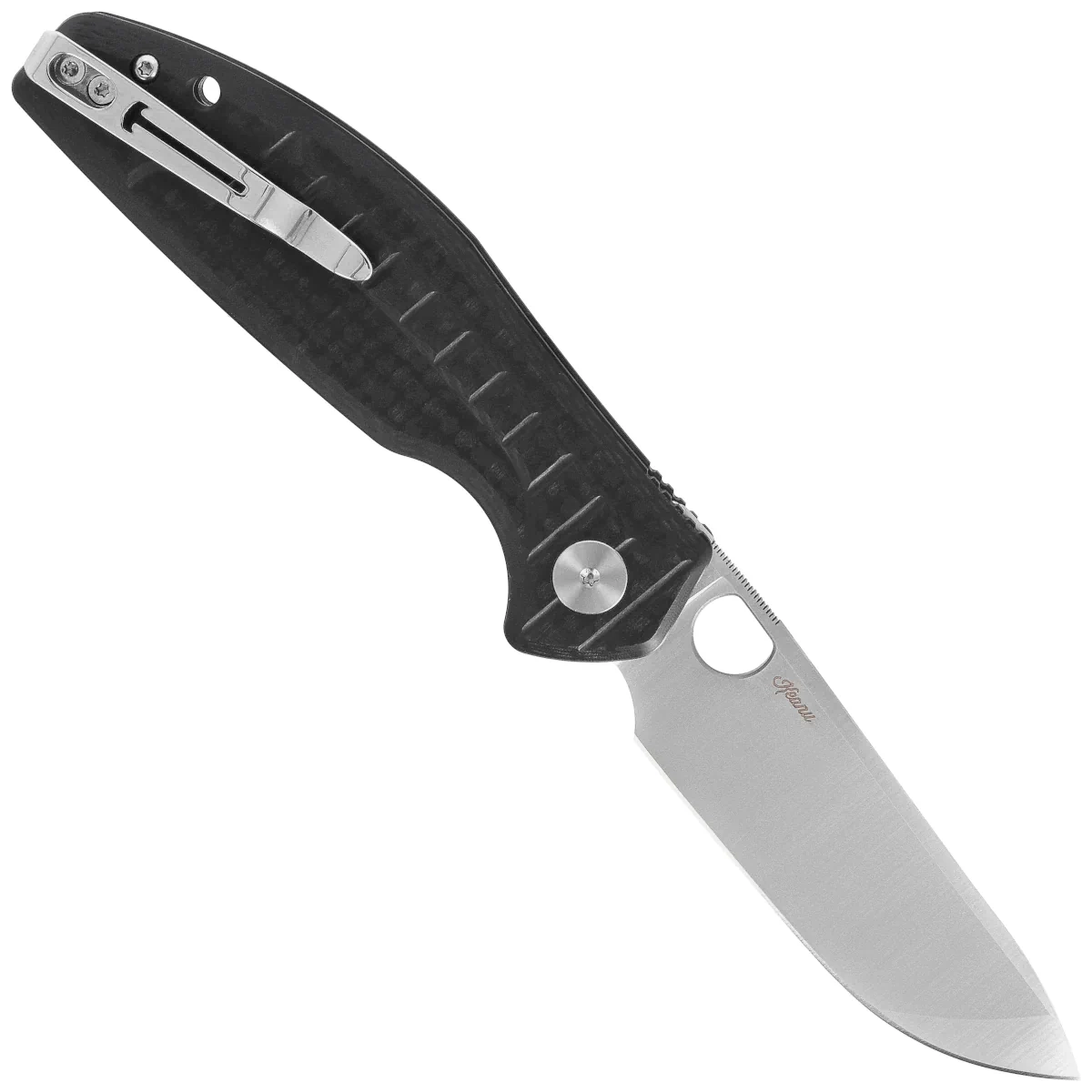 - Angry Owl Black G10 w/ Carbon Fiber Pattern, Satin/Stonewashed – kompaktowy nóż EDC projektu Keanu Alfaro, z głownią ze stali narzędziowej D2, mechanizmem blokady button lock i otworem na kciuk do otwierania. Wyrazista rękojeść z kompozytu G10.