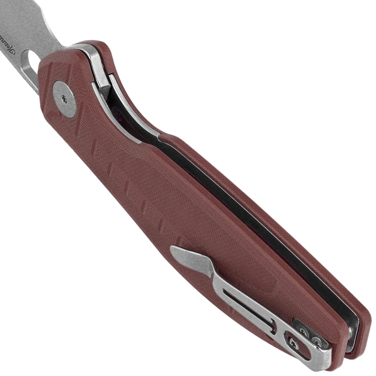 Rękojeść - z kompozytu G10 gwarantują lekkość, wysoką wytrzymałość i pewny chwyt nawet w wilgotnych warunkach. Teksturowana powierzchnia poprawia trzymanie, nie powodując nadmiernego zużycia odzieży. Button lock zapewnia łatwe blokowanie i odblokowywanie ostrza, a otwór w głowni wspiera szybkie otwieranie. Klips deep carry o odwracalnym montażu umożliwia dyskretne przenoszenie, otwór na smycz zwiększa możliwości mocowania. Ergonomiczne kształtowanie uchwytu zapewnia komfort podczas długotrwałego użytkowania.