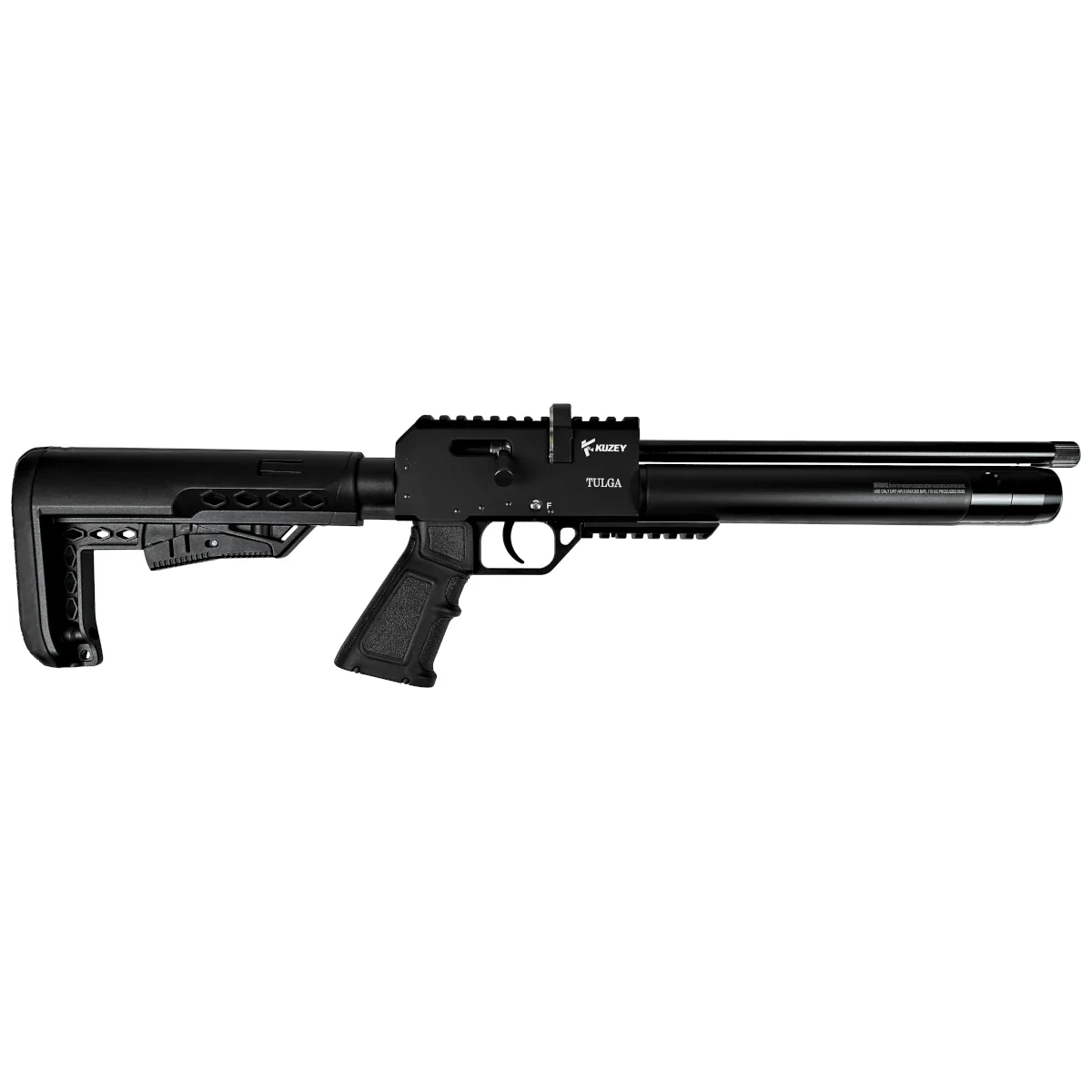 • Kuzey Tulga Compact, karabin PCP w wersji carbine z niezawodnym czterotaktowym zamkiem i taktyczną osadą z teleskopową kolbą. Idealna wiatrówka do strzelectwa rekreacyjnego i sportowego. Dostępne kalibry: 4.5 mm, 5.5 mm, 6.35 mm.