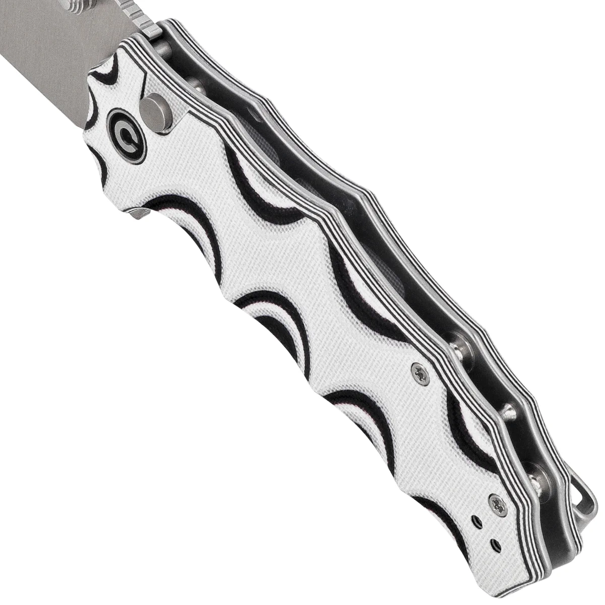 - Natterjack White / Black G10, Satin, wytrzymały nóż EDC z głownią typu clip point wykonaną ze stali 14C28N i profilowaną rękojeścią z G10. Mechanizm button lock, flipper i thumb stud gwarantują szybki, wygodny dostęp do ostrza w każdej sytuacji.