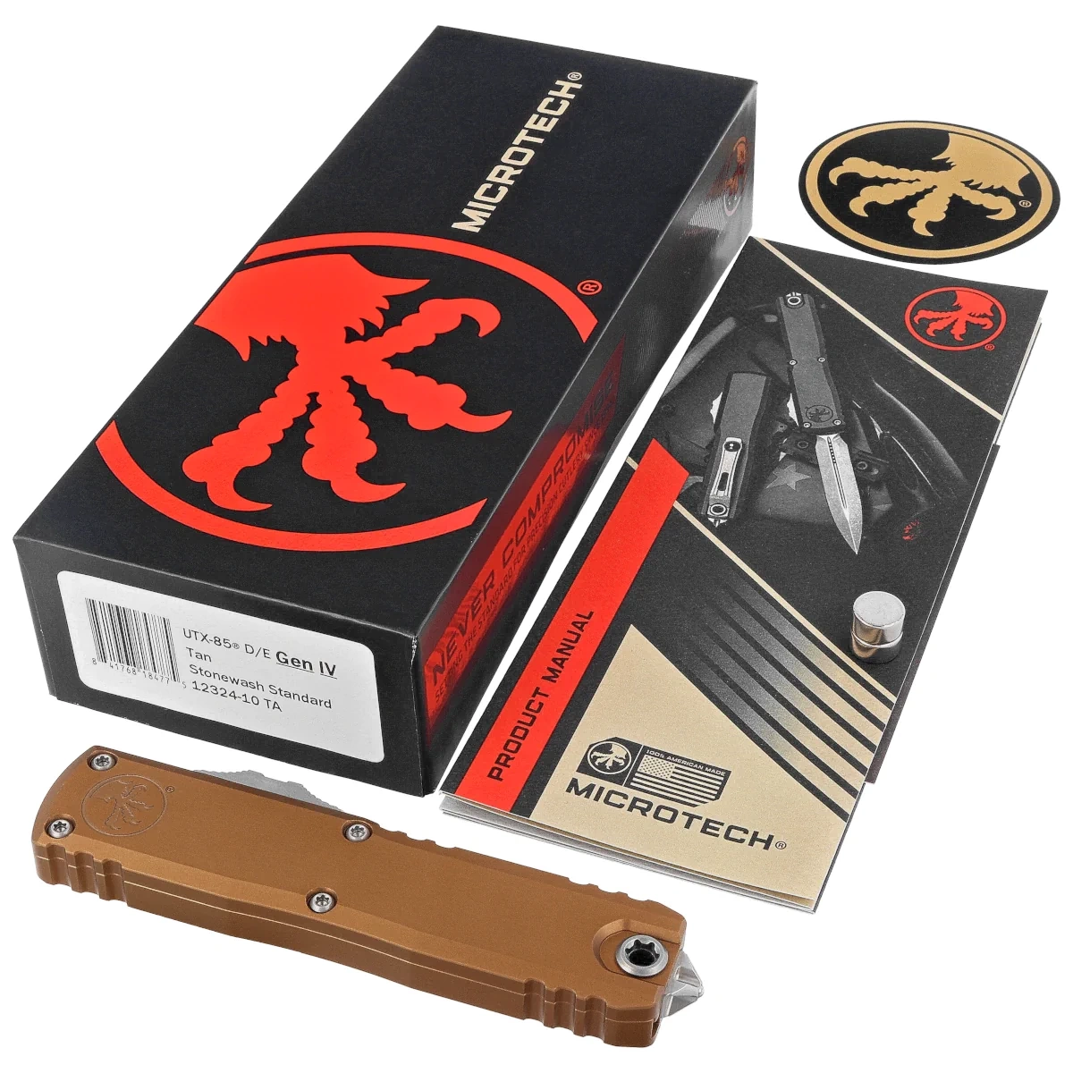 Nóż automatyczny OTF Microtech UTX-85 Gen IV D/E Tan Aluminium, Stonewashed M390MK by Tony Marfione (12324-10TA)