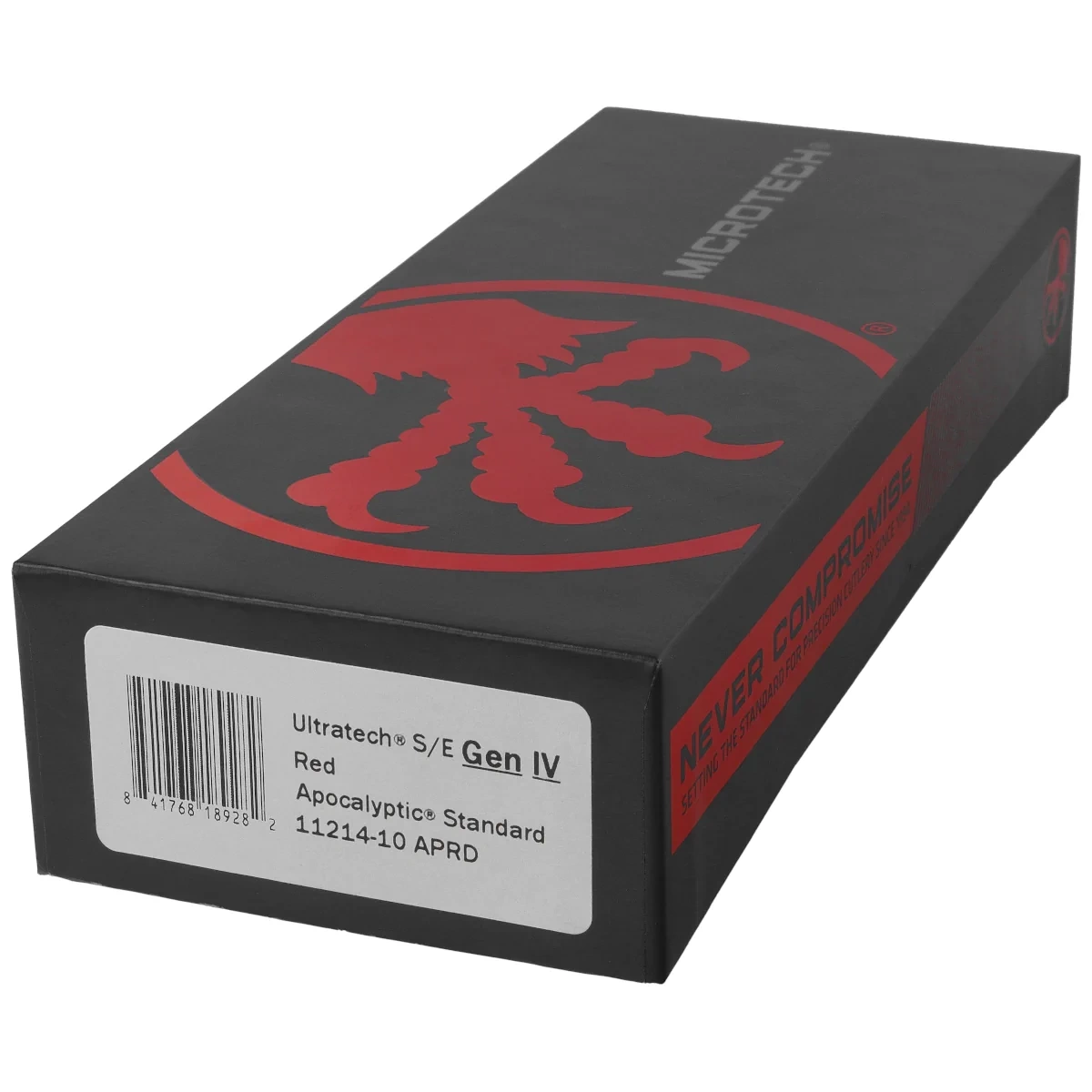 Ultratech Gen IV S/E Red Aluminium, Apocalyptic to pełnowymiarowy nóż automatyczny OTF (Out The Front) z serii Ultratech. Czwarta generacja wyróżnia się szeregiem usprawnień, takich jak; Crud Kutter™, Dual-Fuel Drive Train™. Przeprojektowano również rękojeść, wyposażając ją w rozwiązania znane z innych modeli. Pracujący w trybie D/A (Double Action), umożliwia błyskawiczne wysunięcie i schowanie ostrza za pomocą jednego ruchu kciuka. Projekt autorstwa Tony’ego Marfione, właściciela Microtech Knives, łączy w sobie nowoczesny design z najwyższą jakością wykonania.