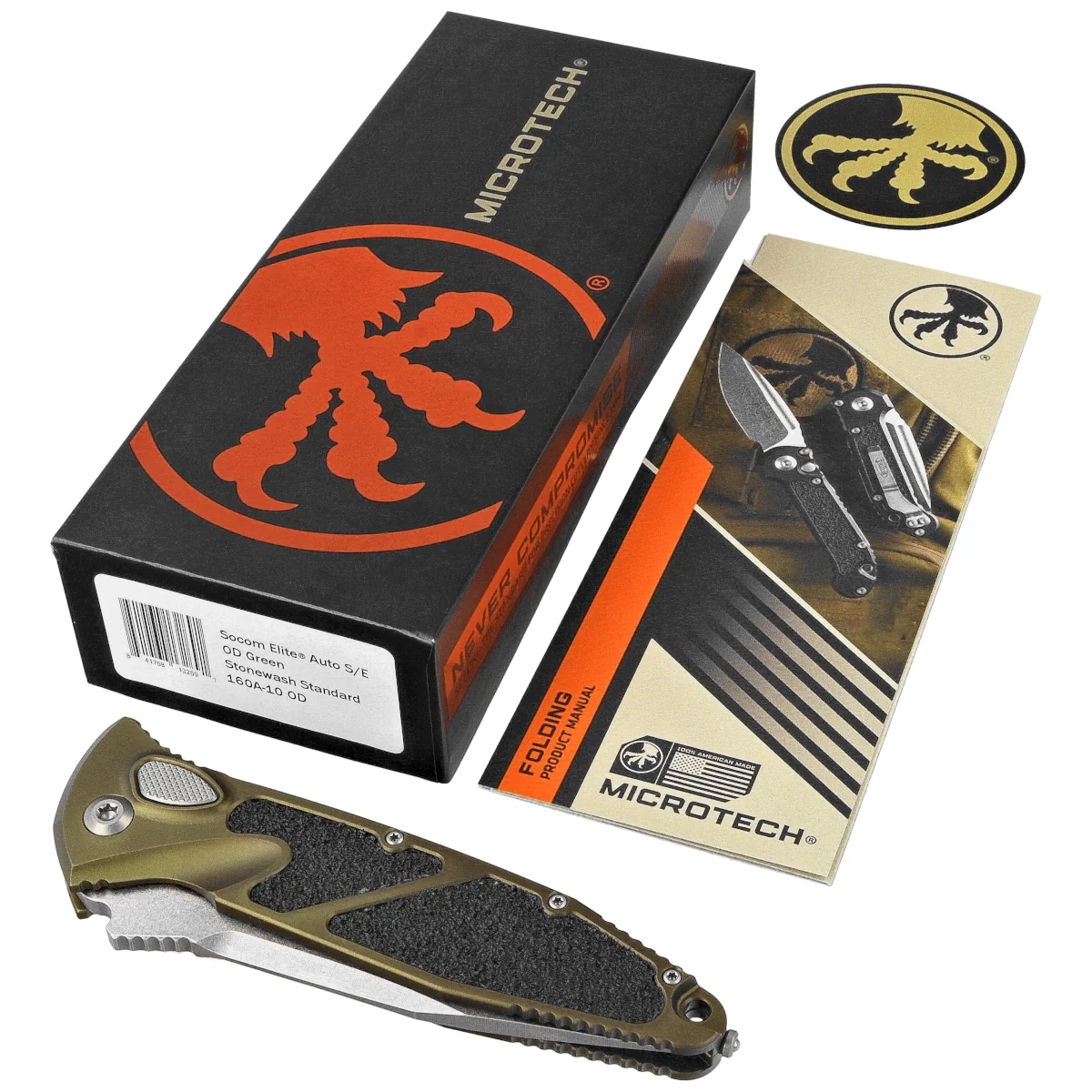Nóż automatyczny Microtech Socom Elite Auto S/E OD Green Aluminium, Stonewashed M390 by Tony Marfione (160A-10OD)