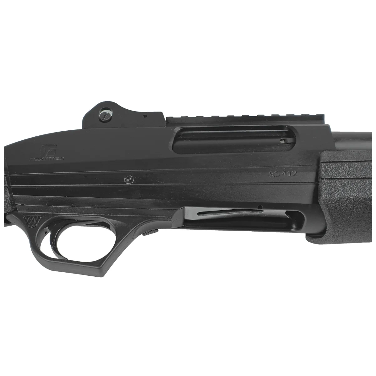 - Reximex RS412 HD Black 20" w kalibrze 12/76, gładkolufowa taktyczna strzelba powtarzalna w wersji Home Defence, wyposażona w stałe taktyczne przyrządy celownicze, 2 szyny Picatinny 22 mm oraz mocowania do pasa jedno- lub dwupunktowego.