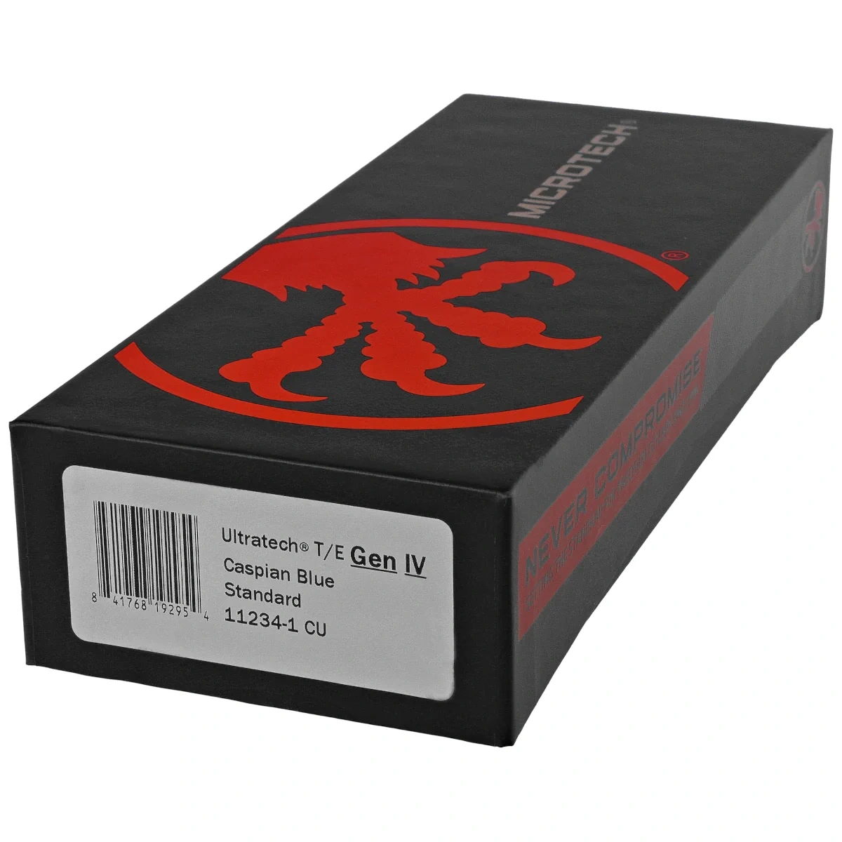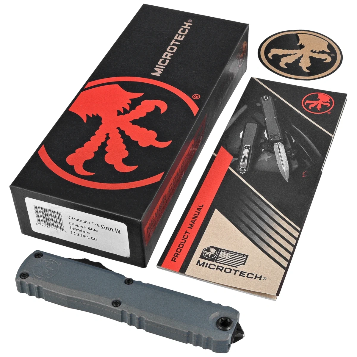 Ultratech Gen IV T/E Caspian Blue Aluminium, Black to pełnowymiarowy nóż automatyczny OTF (Out The Front) z serii Ultratech. Czwarta generacja wyróżnia się szeregiem usprawnień, takich jak; Crud Kutter™, Dual-Fuel Drive Train™. Przeprojektowano również rękojeść, wyposażając ją w rozwiązania znane z innych modeli. Pracujący w trybie D/A (Double Action), umożliwia błyskawiczne wysunięcie i schowanie ostrza za pomocą jednego ruchu kciuka. Projekt autorstwa Tony’ego Marfione, właściciela Microtech Knives, łączy w sobie nowoczesny design z najwyższą jakością wykonania.