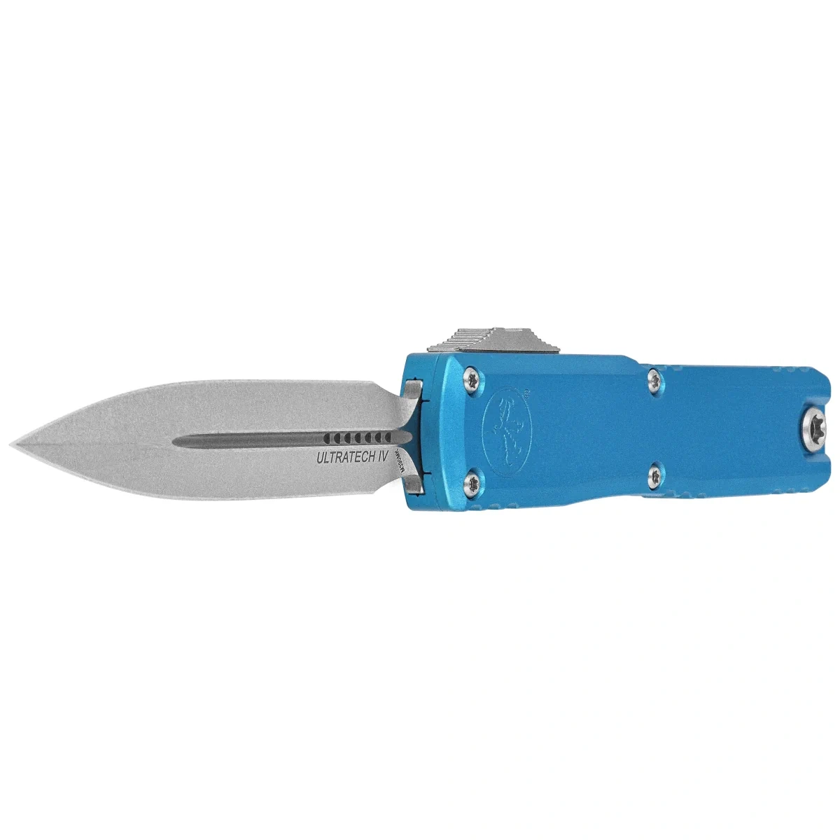 Ultratech Gen IV D/E Blue Aluminium, Stonewashed to pełnowymiarowy nóż automatyczny OTF (Out The Front) z serii Ultratech. Czwarta generacja wyróżnia się szeregiem usprawnień, takich jak; Crud Kutter™, Dual-Fuel Drive Train™. Przeprojektowano również rękojeść, wyposażając ją w rozwiązania znane z innych modeli. Pracujący w trybie D/A (Double Action), umożliwia błyskawiczne wysunięcie i schowanie ostrza za pomocą jednego ruchu kciuka. Projekt autorstwa Tony’ego Marfione, właściciela Microtech Knives, łączy w sobie nowoczesny design z najwyższą jakością wykonania.