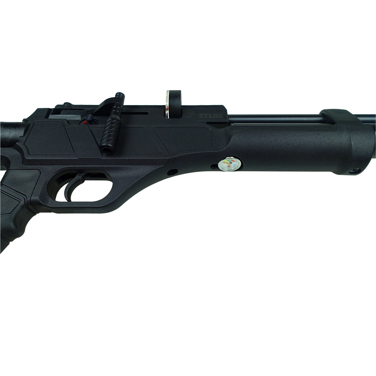 Hatsan Zylox, najnowsza generacja wiatrówek marki Hatsan. Karabin PCP w praktycznej osadzie taktycznej z chwytem pistoletowym. Dzięki teleskopowej kolbie w systemie AR-15 oraz regulowanej bace policzkowej można karabin w pełni dostosować do swoich preferencji. Składana na bok kolba ułatwia przenoszenie.  Zbiornik powietrza 215cc 200bar. Wiatrówkę wyposażono w precyzyjną gwintowaną lufę zakończoną gwintem 1/2" UNF, umożliwiający montaż kompensatora podrzutu (w zestawie) lub tłumika, biathlonową dźwignię przeładowania Side Lever z przedłużoną tuleją pionową, podwójną szynę na optykę 11 i 22 mm. Dostępny w kalibrach: .177 (4.5 mm), .22 (5.5 mm), .25 (6.35 mm).