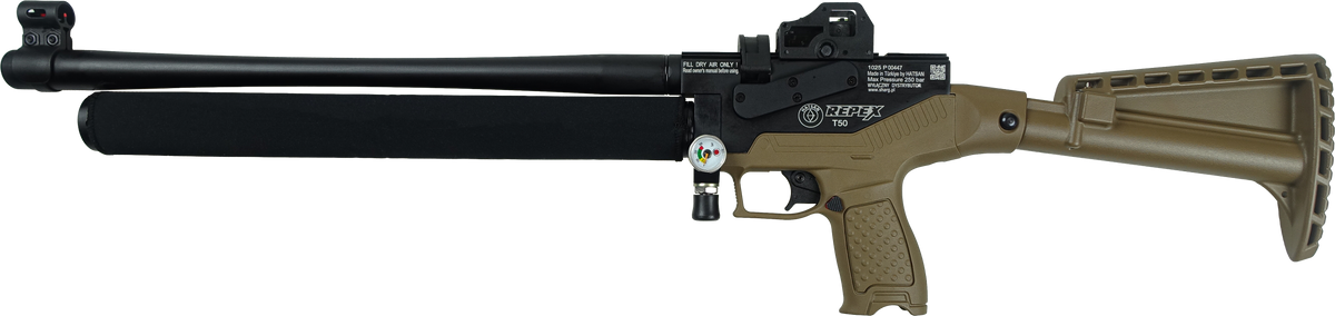 1 698,00 złHatsan Repex T50 FDE to potężny karabin PCP kalibru .50 (12,7 mm), zaprojektowany specjalnie do strzelania kulami gumowymi oraz znakującymi kulami RAM. Wersja z osadą w kolorze FDE (Flat Dark Earth) łączy nowoczesny, taktyczny wygląd z wysoką funkcjonalnością.