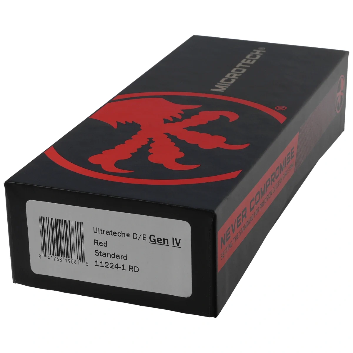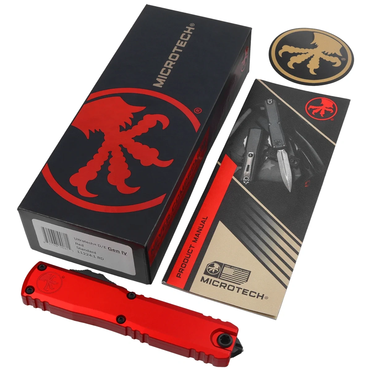 Ultratech Gen IV D/E Red Aluminium, Black to pełnowymiarowy nóż automatyczny OTF (Out The Front) z serii Ultratech. Czwarta generacja wyróżnia się szeregiem usprawnień, takich jak; Crud Kutter™, Dual-Fuel Drive Train™. Przeprojektowano również rękojeść, wyposażając ją w rozwiązania znane z innych modeli. Pracujący w trybie D/A (Double Action), umożliwia błyskawiczne wysunięcie i schowanie ostrza za pomocą jednego ruchu kciuka. Projekt autorstwa Tony’ego Marfione, właściciela Microtech Knives, łączy w sobie nowoczesny design z najwyższą jakością wykonania.