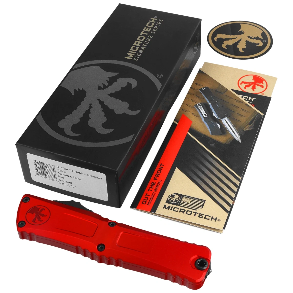 Nóż automatyczny OTF Microtech Combat Troodon Gen III Interceptor Signature Red Aluminum, Black M390MK by Tony Marfione (1217-1RDS)