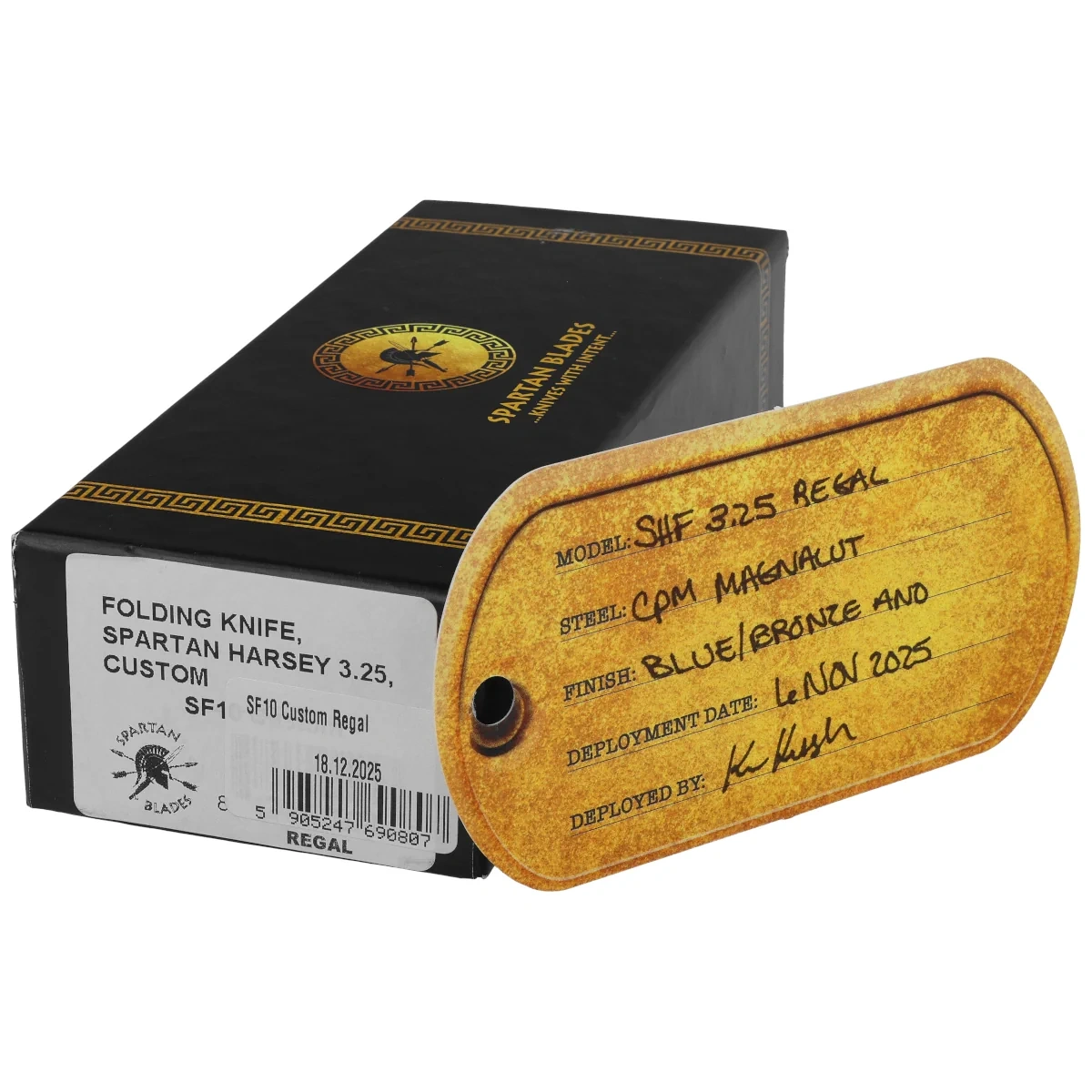 Spartan Harsey Folder 3.25 Special Edition "Regal'' Titanium, Stonewashed. "Spartan Harsey Folder 3.25 Regal" lub "SHF 3.25 Regalto limitowana edycja noża składanego, stworzonego według autorskiego projektu słynnego mistrza nożownictwa - Billa Harseya. Zdobywcy nagrody American Made Knife of The Year 2016 na targach nożowych Blade Show w Atlancie.