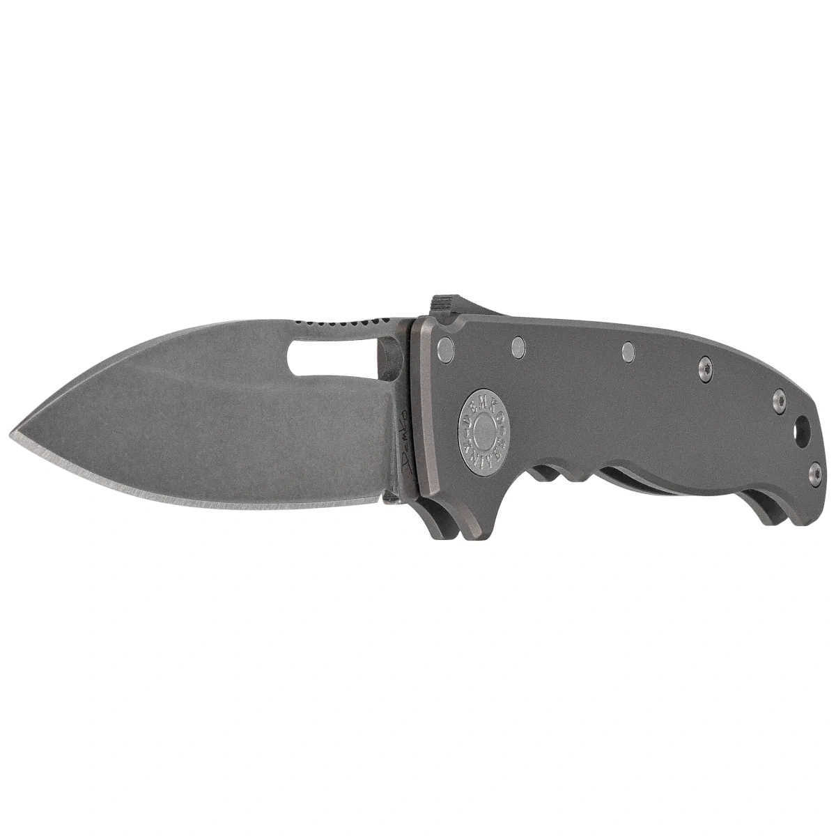 • AD20.5 Slicer Shark Smooth Titanium, Stonewashed, kompaktowy nóż składany klasy premium z frezowaną rękojeścią z tytanu, głownią ze stali CPM 3V i opatentowaną blokadą Shark-Lock™. Projekt Andrew Demko dla najbardziej wymagających użytkowników.
