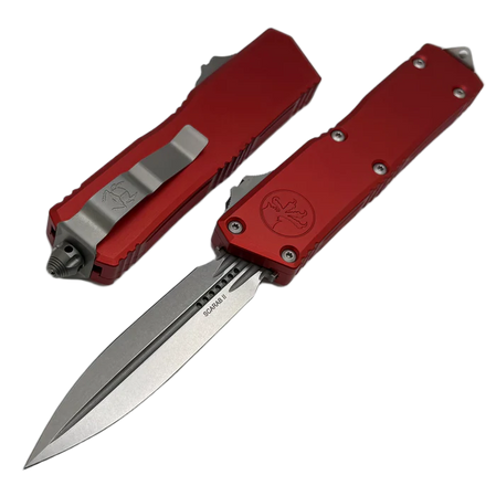 Nóż automatyczny OTF Microtech Scarab II Gen III Executive D/E Red Aluminium, Stonewashed M390MK by Tony Marfione (1175-10RD)