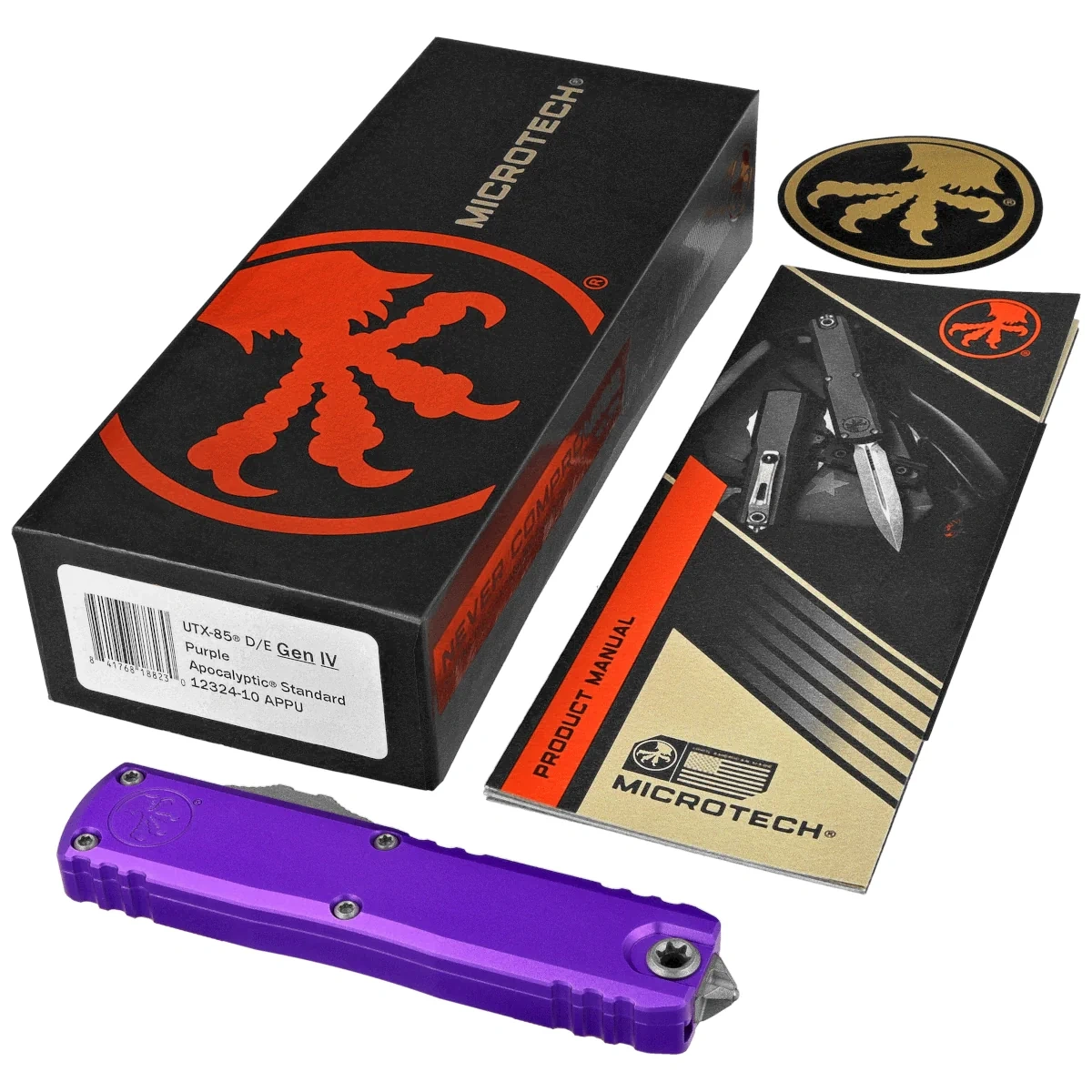 - UTX-85 Gen IV D/E Purple Aluminium, Apocalyptic to kompaktowy nóż automatyczny OTF z serii UTX-85. Zaprojektowany do zastosowań EDC, zachowuje wszystkie zalety większych modeli. Pracujący w trybie D/A, wyposażony w szybki mechanizm wysuwający ostrze.