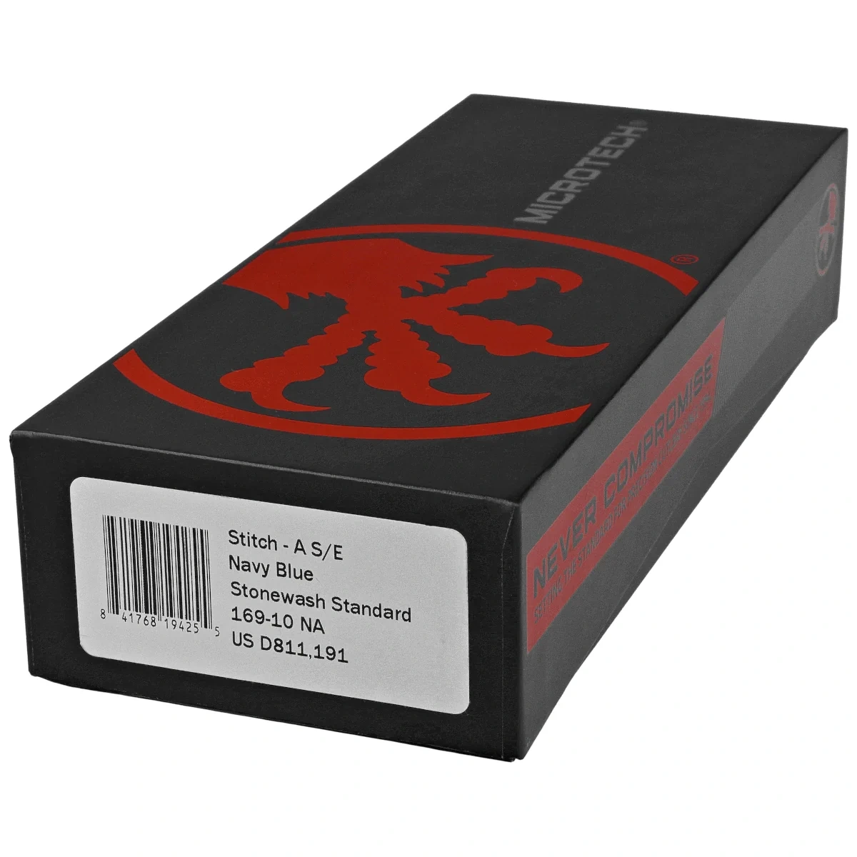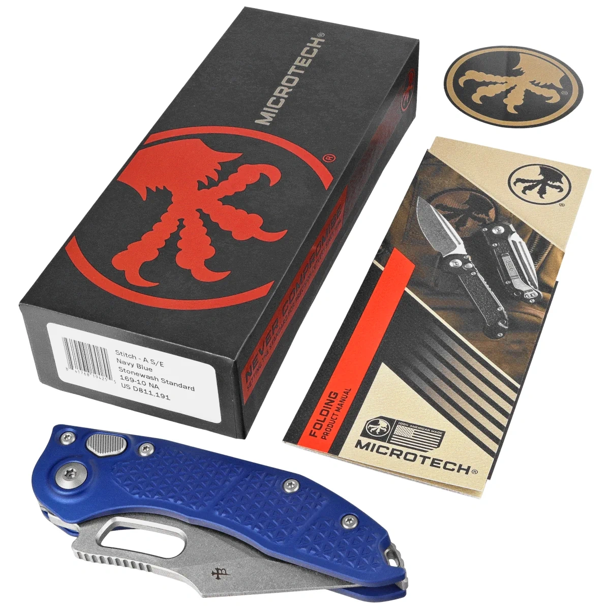 Stitch-A S/E Navy Tri-Grip Aluminium, Stonewashed automatyczna wersja śmiałego projektu wszechstronnego noża taktycznego, efekt współpracy Sebastijana Berenji i firmy Microtech. Szeroka głownia i prosta, wygodna w każdym chwycie rękojeść dają mocny nóż taktyczny wykonany z dbałością o najdrobniejsze szczegóły i z najlepszych materiałów. Wierny towarzysz, który nigdy nie zawiedzie