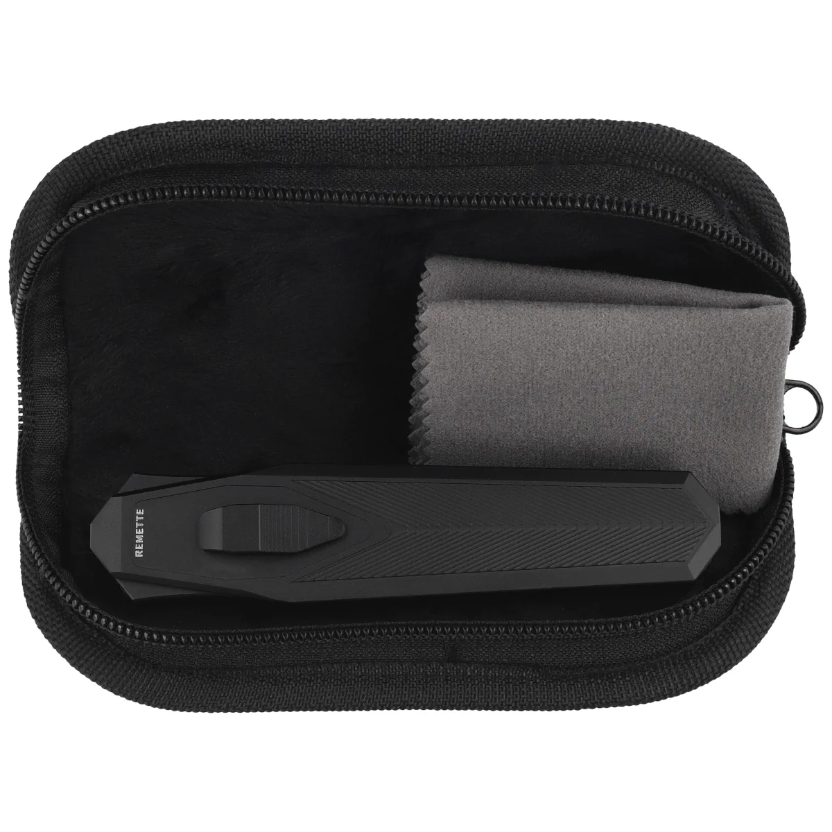 Swordfish T Black Aluminium / Copper Carbon Fiber, Titanium Black otwierany intuicyjne, nóż składany z manufaktury Remette Knives, popis inżynierów w projektowaniu. Gravity OTF (Out The Front), głownia wysuwana z przodu dzięki sile grawitacji. Wzorowany na konstrukcji grawitacyjnego noża lotniczego Luftwaffe, potocznie nazywanego nożem niemieckich spadochroniarzy. Intuicyjne wysuwanie / wsuwanie ostrza jedną ręką (pod wpływem siły ciężkości) oraz doskonałe materiały takie jak stal głowni CPM S35VN czy aluminiowa rękojeść, perfekcyjnie połączone ze sobą z niezrównaną jakością marki Remette!