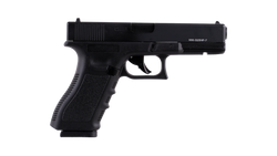 Niksan Defense NKS GL17, wiatrówka CO2 na kulki BBs, wierna replika pistoletu Glock 17. Wersja z metalowym, ruchomym zamkiem z systemem blowback odwzorowującego pracę prawdziwej broni. Wersja w kolorze czarnym.