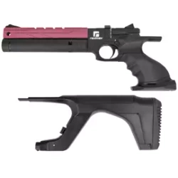 RP Copper Red, a PCP sport pistol with a regulator for repeatable shots. Adjustable pin barrel and trigger tongue. Pressure vessel with a capacity of. 50cc. Anatomical handle with shelf with flask attachment option. Cal. 4.5mm, 5.5mm